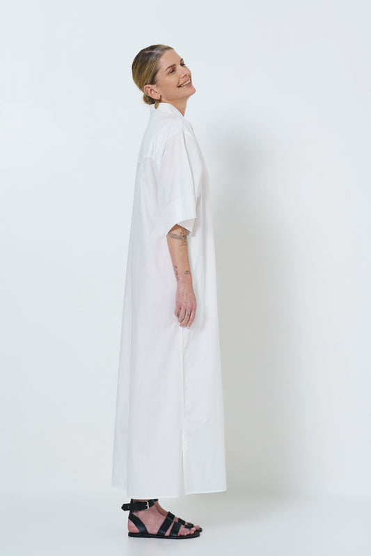 CARINE BUTTON UP DRESS- WHITE