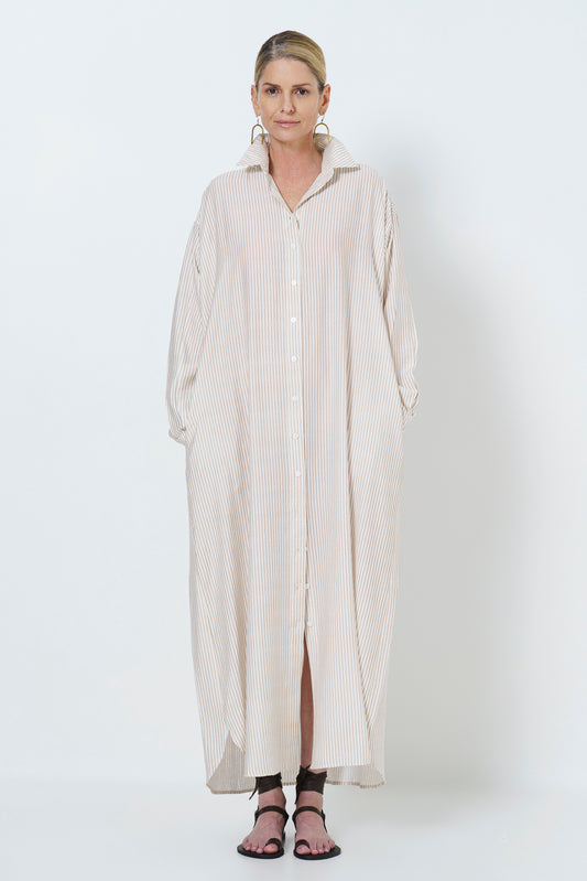 Juliette Long Dress - Stone Stripe